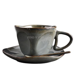 Set di tazze e piattini in ceramica di spessore colorato grigio brillante set di tazze da tè e caffè in porcellana fine