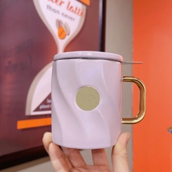 Tazza in ceramica con manico in oro, carina e creativa, borsa da caffè colorata