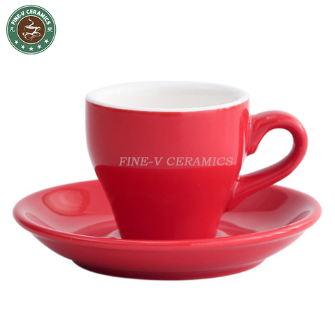 80cc נורדי סגנון צהוב כתום צבע מזוגג מיני קיבולת סטנדרטי אמריקאי אספרסו קרמיקה כוס קפה וסט צלחת